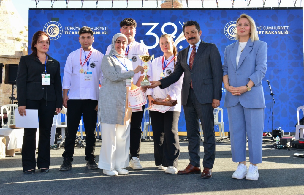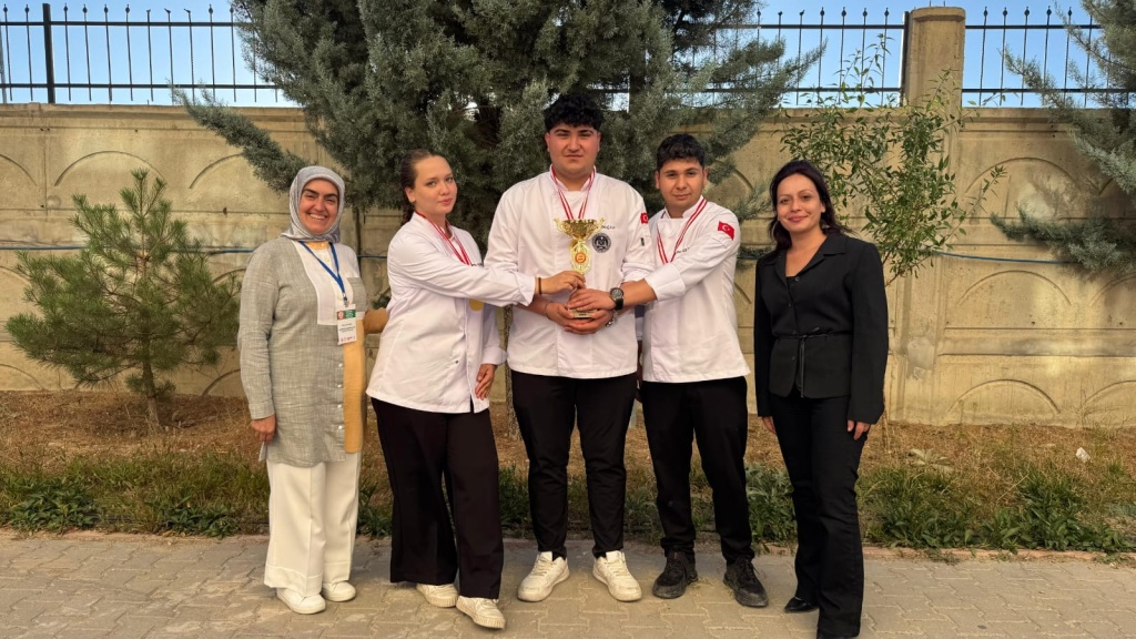 38. Ahilik Haftası etkinlikleri kapsamında Kırşehir’de düzenlenen ve 14 şehirden lise öğrencilerinin katıldığı yemek yarışmasında okulumuz büyük bir başarıya imza attı. Yarışmada “Çirleme Yemeği” ve “Ahilik Helvası” ile hünerlerini sergileyen öğrencilerimiz, jüri tarafından ikincilik ödülüne layık görüldü. Ödül, Kırşehir Valisi Sayın Murat Sefa Demiryürek tarafından takdim edilirken, öğrencilerimiz hem yöresel lezzetleri başarıyla temsil etmenin hem de Ahilik kültürünü yaşatmanın gururunu yaşadı. Okulumuz Yiyecek İçecek Öğretmeni Hülya HAYBER'e ve öğrencilerimiz İrem Nur NEDİRLİ, Kürşad DOĞAN ve Kerem Paşa ÖZKİRİŞCİ'ye teşekkür ederiz.